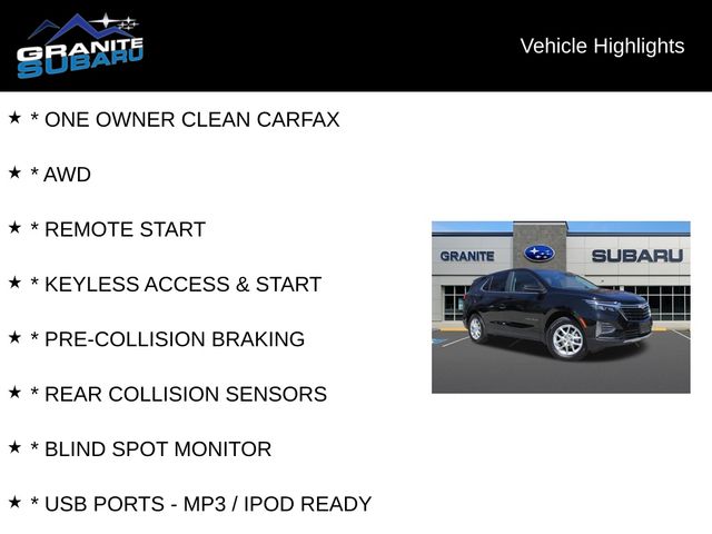 * ONE OWNER CLEAN CARFAX, * AWD, * REMOTE START, * KEYLESS ACCESS & START, * PRE-COLLISION BRAKING, * REAR COLLISION SENSORS, * BLIND SPOT MONITOR, * USB PORTS - MP3 / IPOD READY, * BACKUP CAMERA, * ALLOY WHEELS, AWD. Odometer is 2937 miles below market average! Priced below KBB Fair Purchase Price!
