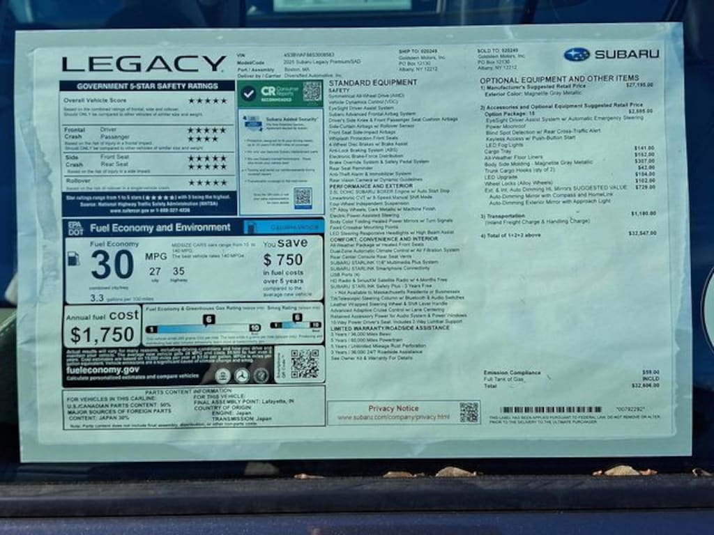 New 2025 SubaruLegacy Premium