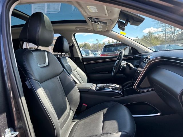 The 2022 Tucson Limited is meticulously equipped to provide you with the ultimate in comfort and convenience. Sink into the plush, heated and ventilated leather-appointed seats and enjoy the seamless integration of cutting-edge technology, including a Bose Premium audio system, navigation, and Apple CarPlay/Android Auto compatibility.