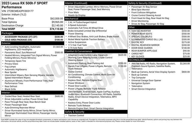 2023 LEXUS RX 500h F Sport Performance